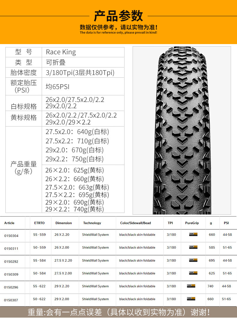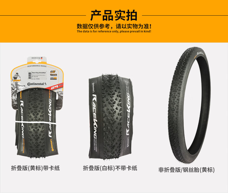 马牌山地车外胎2627.529x1.952.02.2自行车折叠真空轮胎Raceking27.5x2.0-黄标RaceKing钢丝胎非折叠无规格
